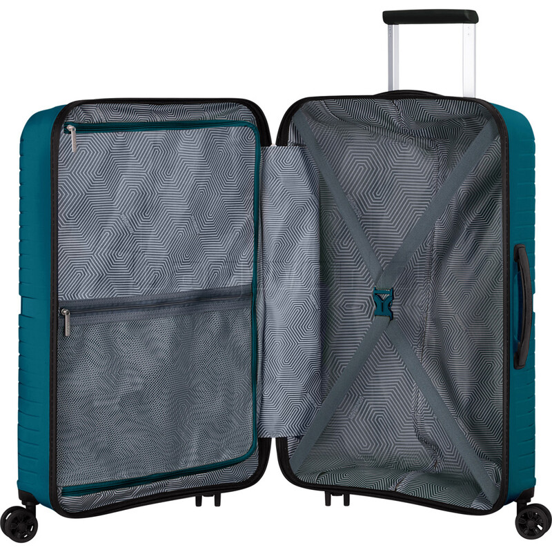 American Tourister Airconic is extremely lightweight with the large spinner only weighing 3.2kg. This range is revolutionary and sets a new benchmark for lightweight polypropylene luggage. Airconic suitcases have some amazing features, including: water-repellent coated zippers, double spinner wheels for easy movement, a premium TSA lock and fully lined interior with dual straps and zipped divider.