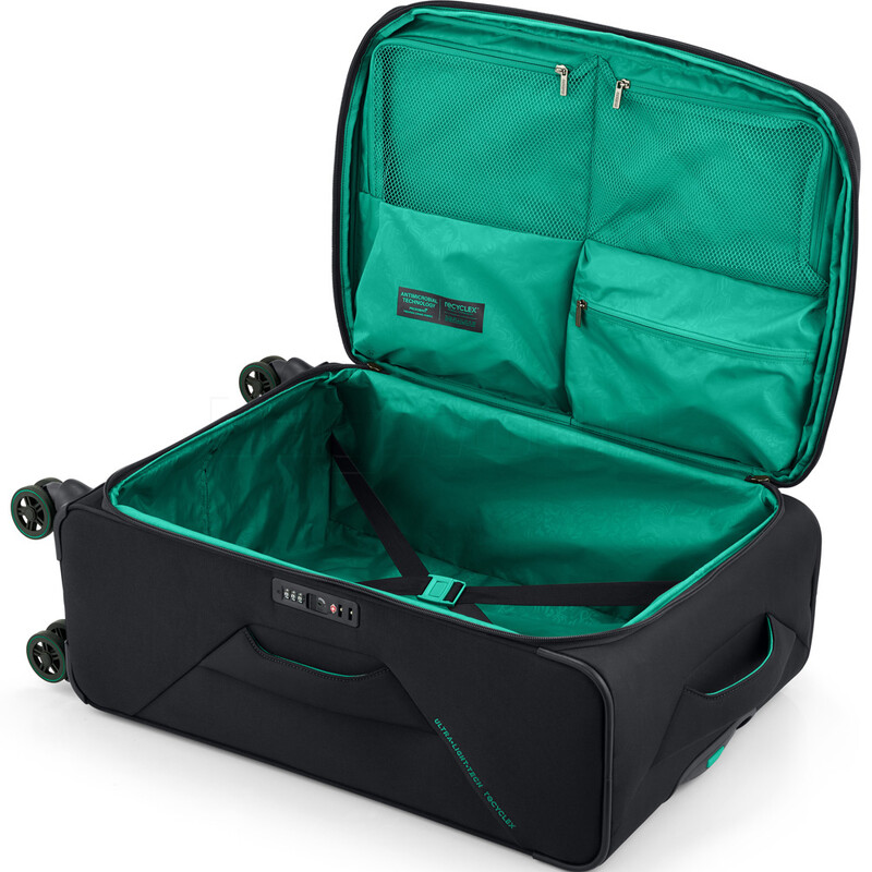 American Tourister Applite has been a global best-seller in softside luggage for many years. The new Applite 5 range has set a new benchmark designed with ultralight tech materials. The interior and exterior fabrics are made with 100% post-consumer recycled plastic bottles (rPet). Applite 5 suitcases are lightweight and packed with features including expanders and Duosaf™ security zipper (in the check-in sizes only) to give better protection to your belongings during your travels. The premium antimicrobial interior comes with packing straps and zipped dividers to keep your clothes in place and organised.