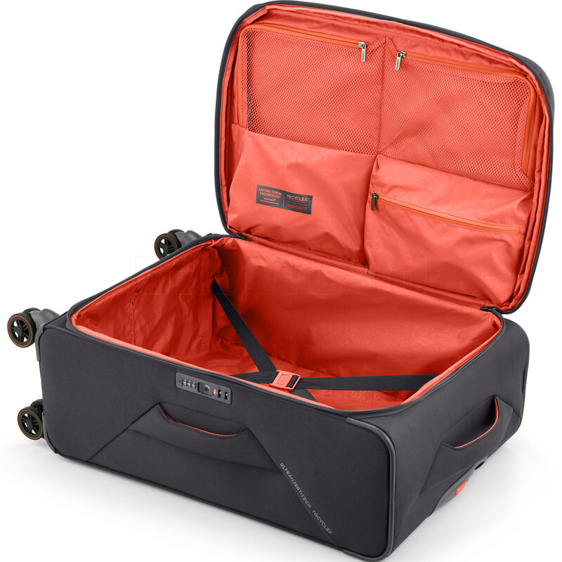 American Tourister Applite has been a global best-seller in softside luggage for many years. The new Applite 5 range has set a new benchmark designed with ultralight tech materials. The interior and exterior fabrics are made with 100% post-consumer recycled plastic bottles (rPet). Applite 5 suitcases are lightweight and packed with features including expanders and Duosaf™ security zipper (in the check-in sizes only) to give better protection to your belongings during your travels. The premium antimicrobial interior comes with packing straps and zipped dividers to keep your clothes in place and organised.