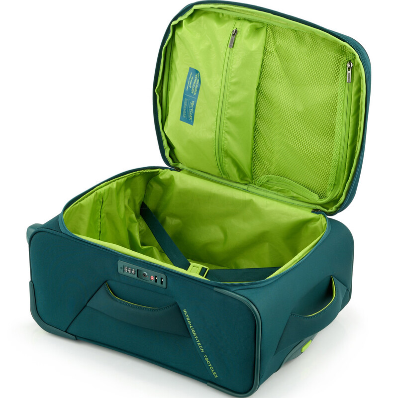 American Tourister Applite has been a global best-seller in softside luggage for many years. The new Applite 5 range has set a new benchmark designed with ultralight tech materials. The interior and exterior fabrics are made with 100% post-consumer recycled plastic bottles (rPet). Applite 5 suitcases are lightweight and packed with features including expanders and Duosaf™ security zipper (in the check-in sizes only) to give better protection to your belongings during your travels. The premium antimicrobial interior comes with packing straps and zipped dividers to keep your clothes in place and organised.