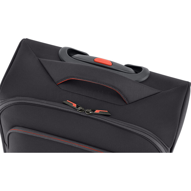 - Rear trolley handle sleeve allows case to be placed on top of other wheeled luggage