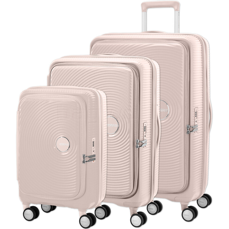 American Tourister Curio Book Opening Hardside Suitcase Set of 3 Dusty Pink 53568, 53569, 53570 with FREE Digital Luggage Scale 12775