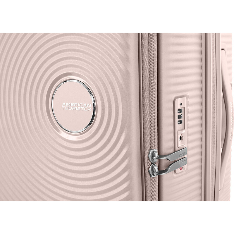 Elevated design and function. American Tourister Curio Book Opening luggage combines the practicality of a soft case with the toughness of a hard case. It features huge packing volume with expandability in all sizes. The Duosaf ™ security zipper delivers top security, and the Optimov™ shock-absorbing wheels allow smooth rolling on bumpy surfaces. The recycled interior lining is treated with Microban® technology to eliminate the growth of bacteria.