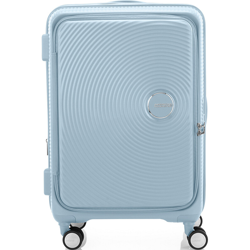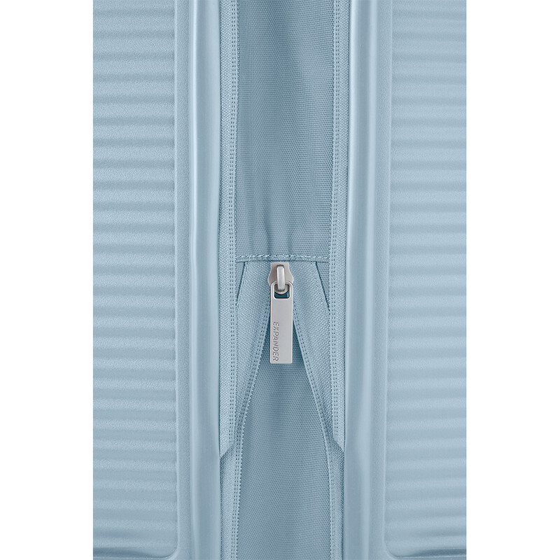 Elevated design and function. American Tourister Curio Book Opening luggage combines the practicality of a soft case with the toughness of a hard case. It features huge packing volume with expandability in all sizes. The Duosaf ™ security zipper delivers top security, and the Optimov™ shock-absorbing wheels allow smooth rolling on bumpy surfaces. The recycled interior lining is treated with Microban® technology to eliminate the growth of bacteria.