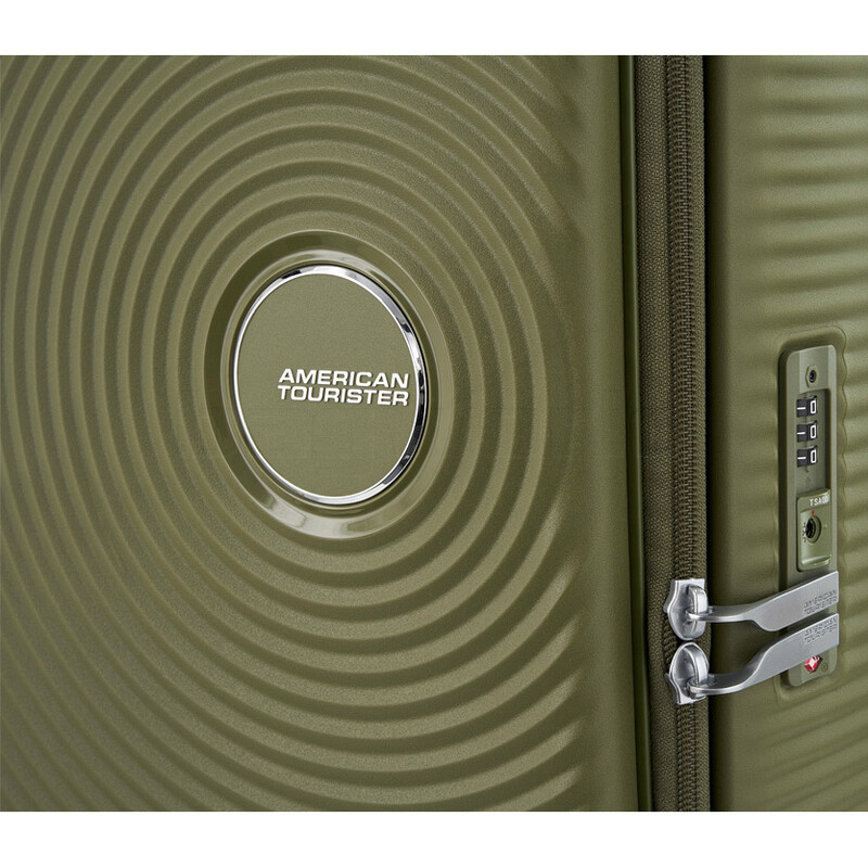 Elevated design and function. American Tourister Curio Book Opening luggage combines the practicality of a soft case with the toughness of a hard case. It features huge packing volume with expandability in all sizes. The Duosaf ™ security zipper delivers top security, and the Optimov™ shock-absorbing wheels allow smooth rolling on bumpy surfaces. The recycled interior lining is treated with Microban® technology to eliminate the growth of bacteria.