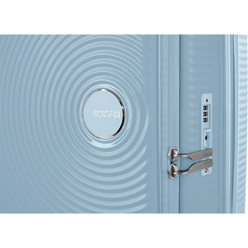 Elevated design and function. American Tourister Curio Book Opening luggage combines the practicality of a soft case with the toughness of a hard case. It features huge packing volume with expandability in all sizes. The Duosaf ™ security zipper delivers top security, and the Optimov™ shock-absorbing wheels allow smooth rolling on bumpy surfaces. The recycled interior lining is treated with Microban® technology to eliminate the growth of bacteria.