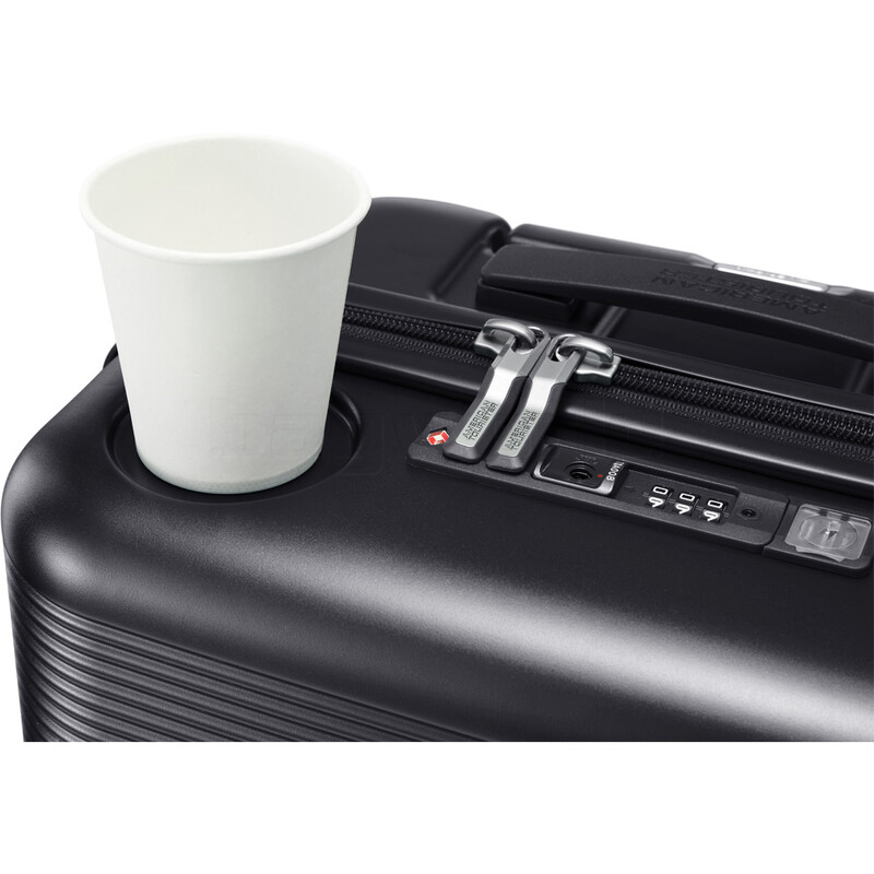 - Integrated cup holder/groove on top of suitcase