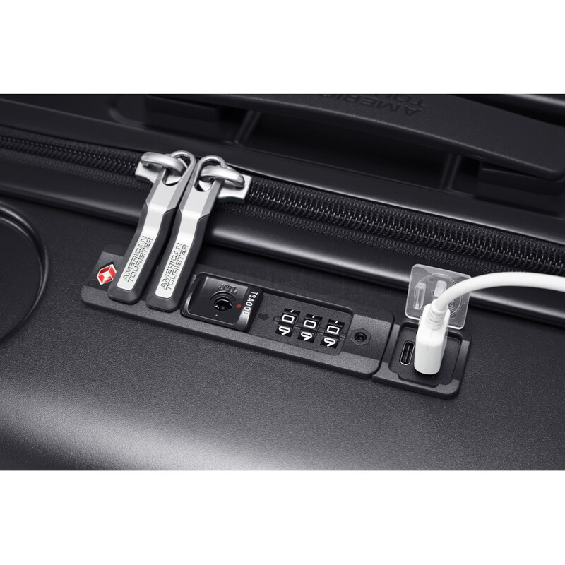 - Inbuilt, low profile TSA approved combination lock with USB charging port