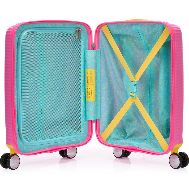 American Tourister Little Curio luggage is the perfect travel companion for young kids. This strong, polycarbonate suitcases features an antimicrobial interior lining with cross straps and mesh divider to keep everything neatly organised. They include DIY name tag with removable stickers for personalisation. Make travelling fun and easy with Little Curio!