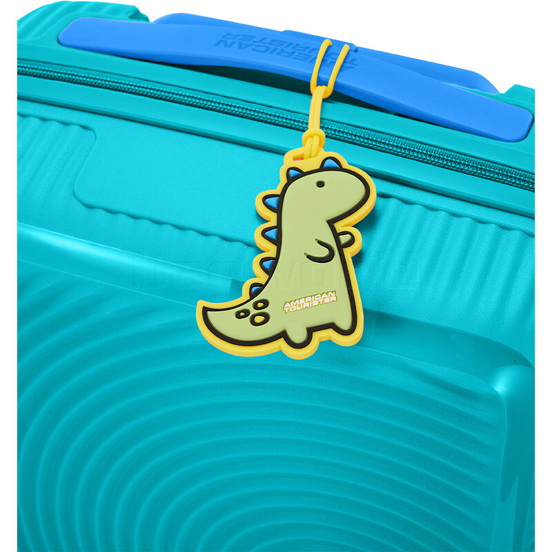 - Dinosaur luggage tag and fun removable stickers included