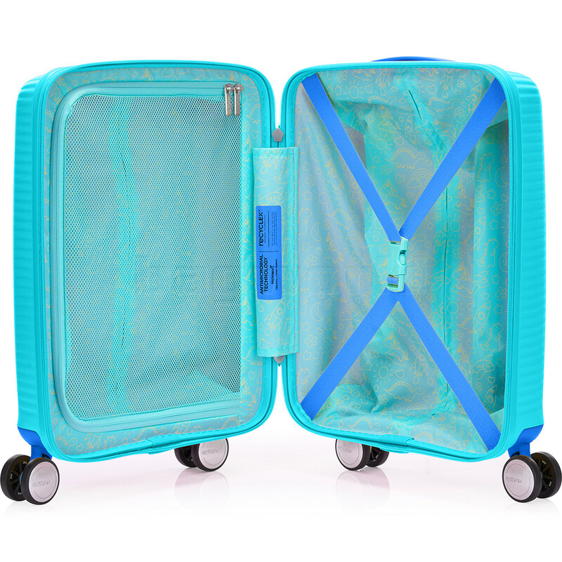 American Tourister Little Curio luggage is the perfect travel companion for young kids. This strong, polycarbonate suitcases features an antimicrobial interior lining with cross straps and mesh divider to keep everything neatly organised. They include DIY name tag with removable stickers for personalisation. Make travelling fun and easy with Little Curio!