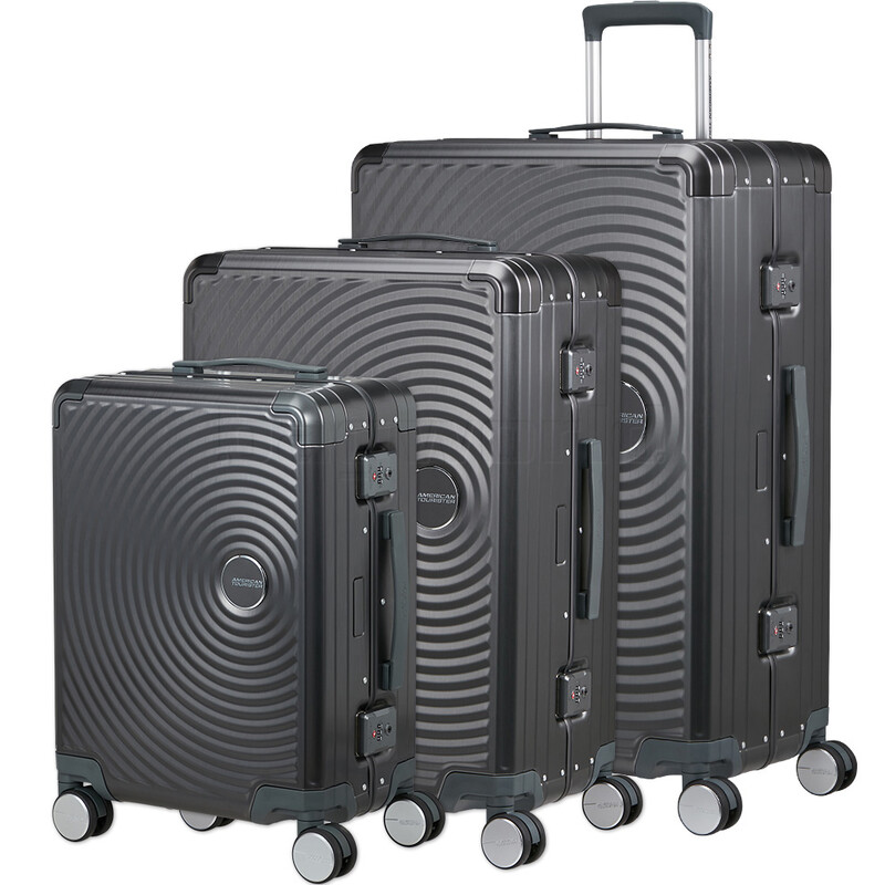 American Tourister Soundbox ALU Hardside Suitcase Set of 3 Brushed Anthracite 55707, 55710, 55711 with FREE Digital Luggage Scale 12775