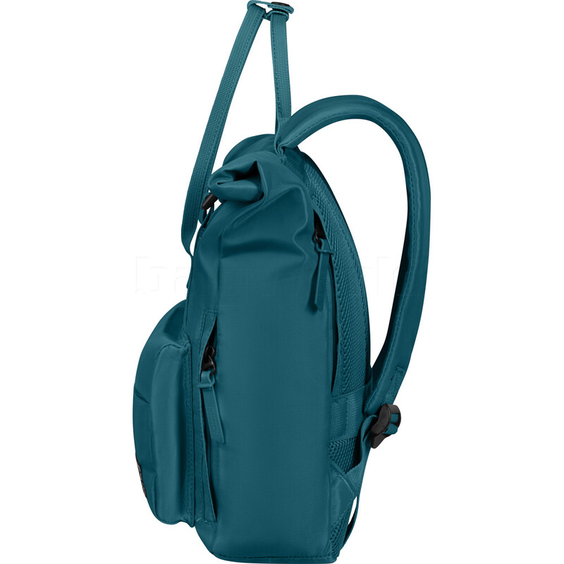 - Spacious main compartment with roll-top and zip closure and interior zip pocket