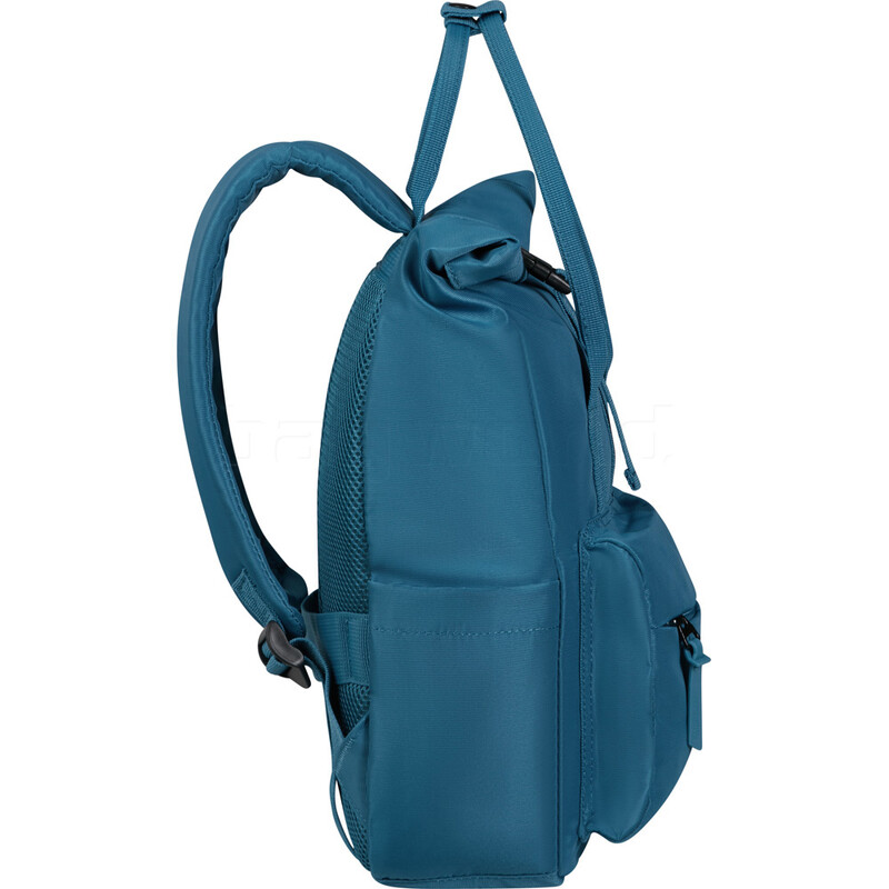 - Spacious main compartment with roll-top and zip closure and interior zip pocket