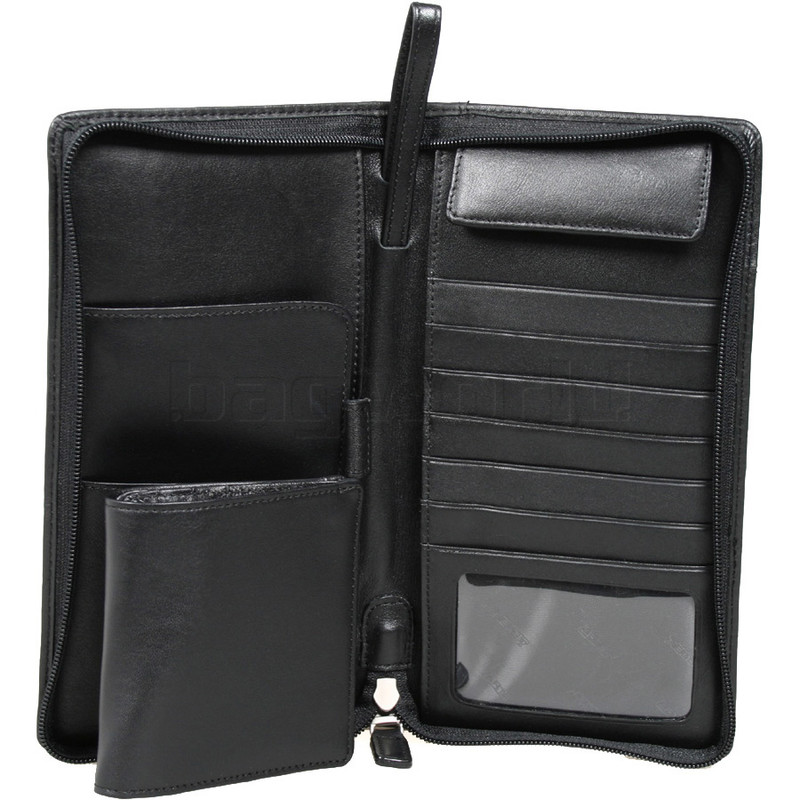 This feature-packed fine leather travel wallet includes a series of compartments to keep all of your travel documents organised.