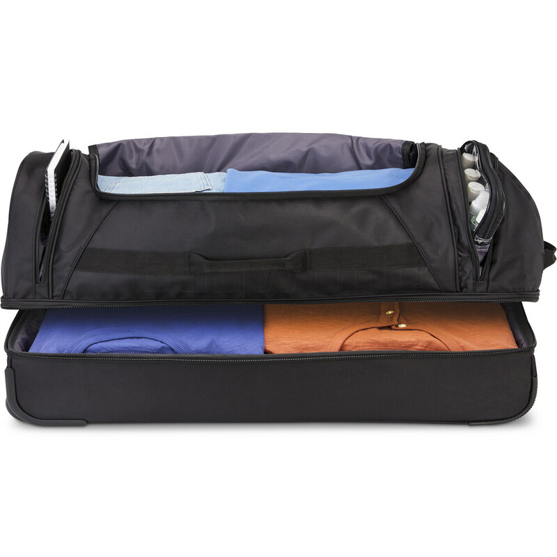 - Two top-loading end compartments ideal for separating dirty laundry or shoes