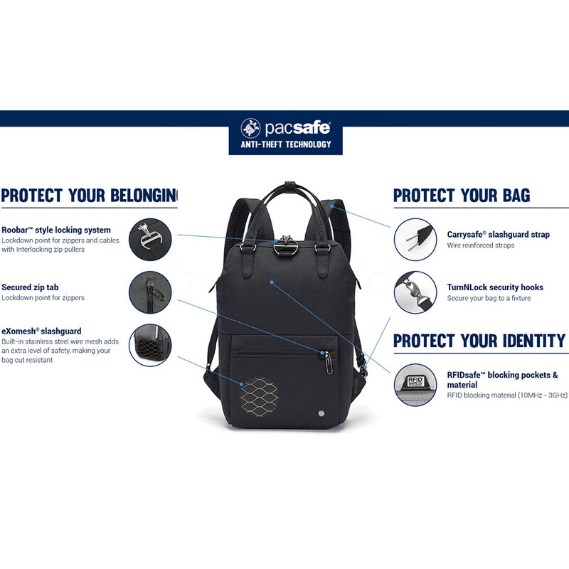 Pacsafe Citysafe CX Anti-Theft 11.6" Laptop Mini Backpack Econyl Black 20421