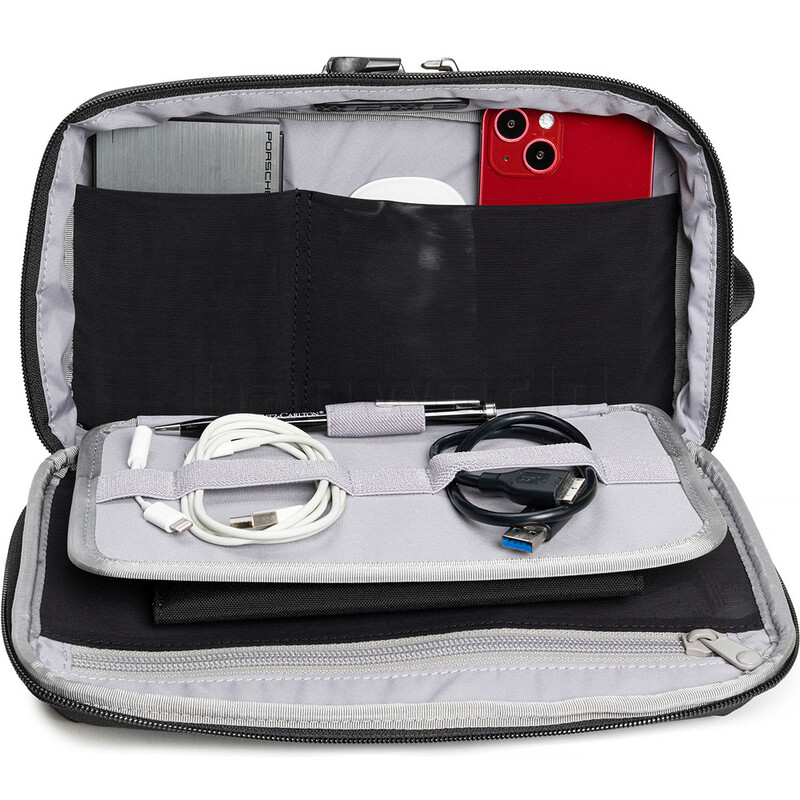 - 2 storage pouches, pen loop, elastic holders and zippered mesh pocket to keep your chargers, cables and other gear tidy