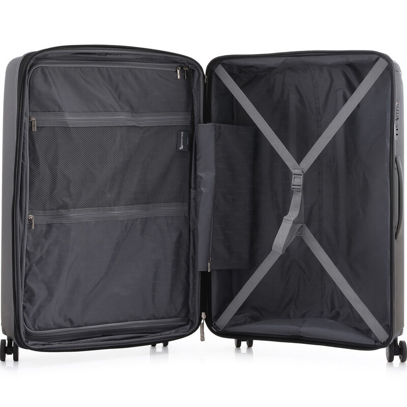 - Fully lined interior with adjustable packing straps, divider panel and 3 zip pockets