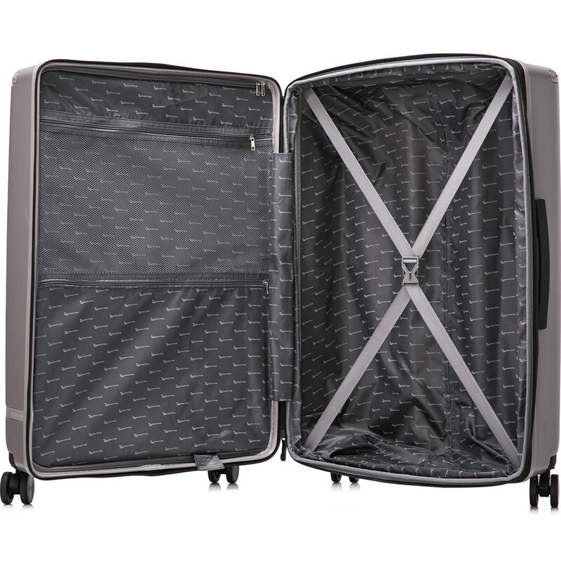 - Fully lined interior with adjustable packing straps and divider panel