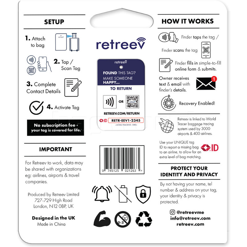 Main features of the Retreev Smart Bag Tag include: