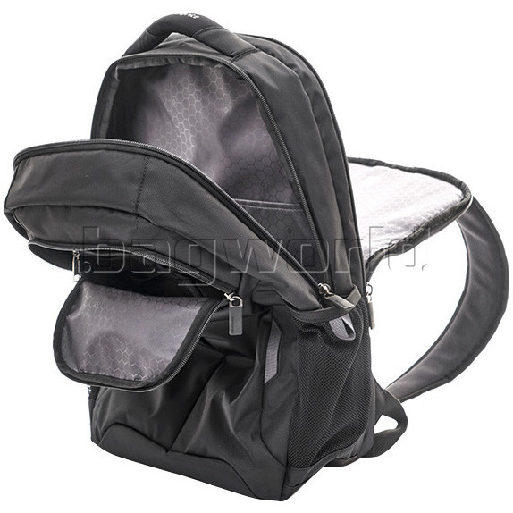 - Padded and breathable mesh backpack panel