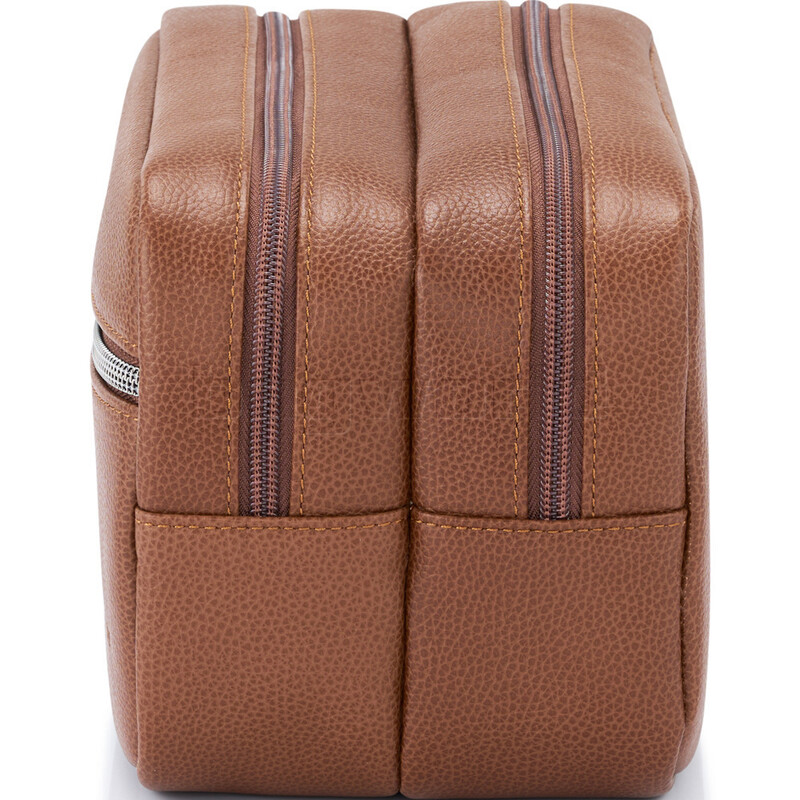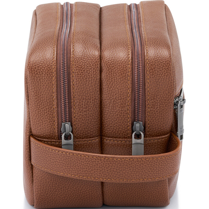 The Classic Leather Toiletry Kit is constructed utilising durable top grain leather. The sophisticated classic design incorporates a dual gusset with water resistant rPET lining, two internal flat pockets for organisation, a zipped exterior front pocket and side carry handle.