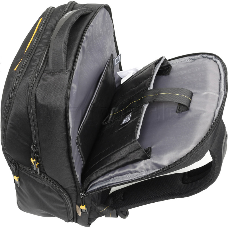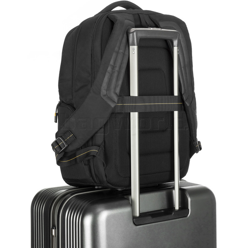 - Rear zippered electronics compartment with padded laptop and tablet sleeves