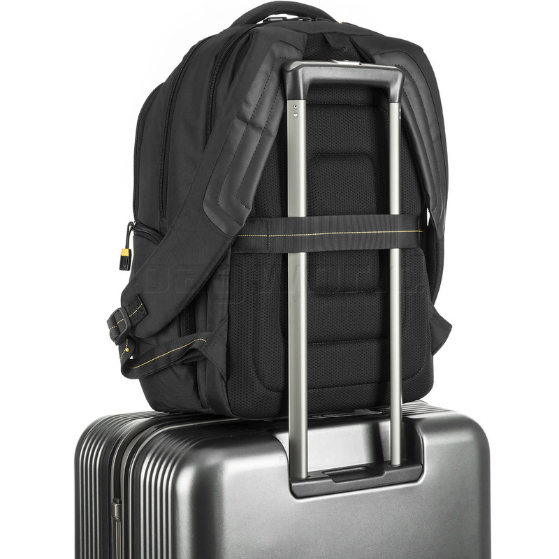 - Rear zippered electronics compartment with padded laptop and tablet sleeves