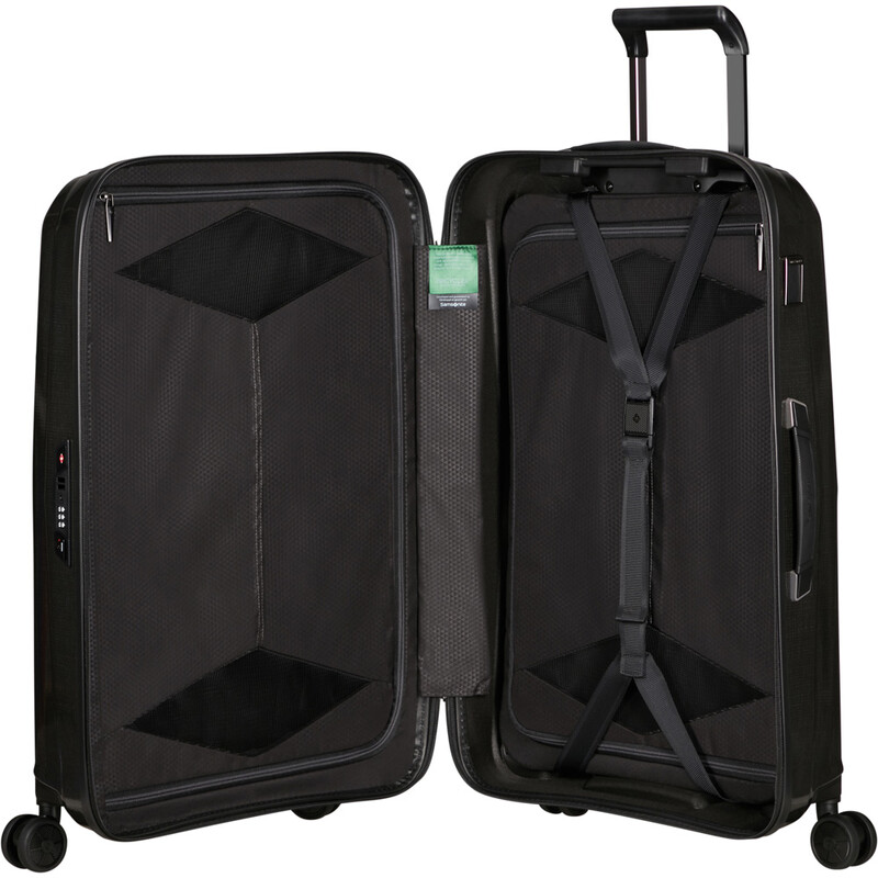 Samsonite Major-Lite luggage represents the start of a new era for Samsonite and Curv® Material Technology. A sophisticated new weaving technique provides incredible self-reinforcing properties as well as a distinctive pattern within. Impeccable attention to detail is shown through the bespoke texture featured on the carry handles, hinges and logo plates in combination with the shadow-chrome metallic trim. The interior is just as well appointed, constructed from Recyclex™ eco-material. Plus, you can make it yours with the included personalisation tag.