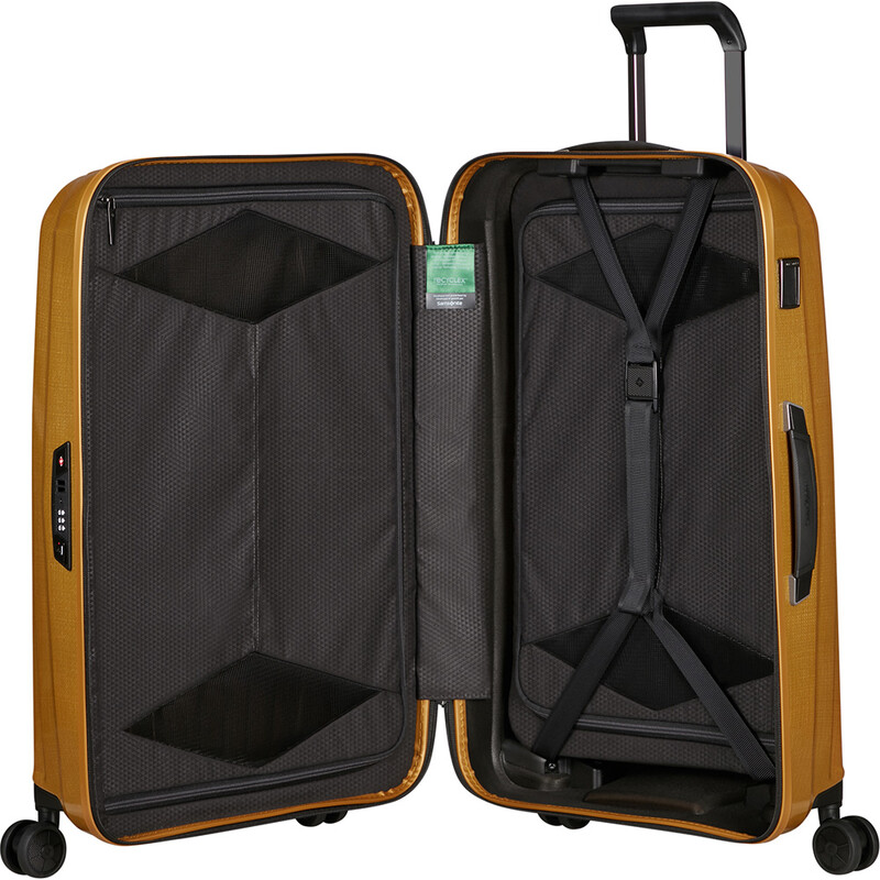 Samsonite Major-Lite luggage represents the start of a new era for Samsonite and Curv® Material Technology. A sophisticated new weaving technique provides incredible self-reinforcing properties as well as a distinctive pattern within. Impeccable attention to detail is shown through the bespoke texture featured on the carry handles, hinges and logo plates in combination with the shadow-chrome metallic trim. The interior is just as well appointed, constructed from Recyclex™ eco-material. Plus, you can make it yours with the included personalisation tag.