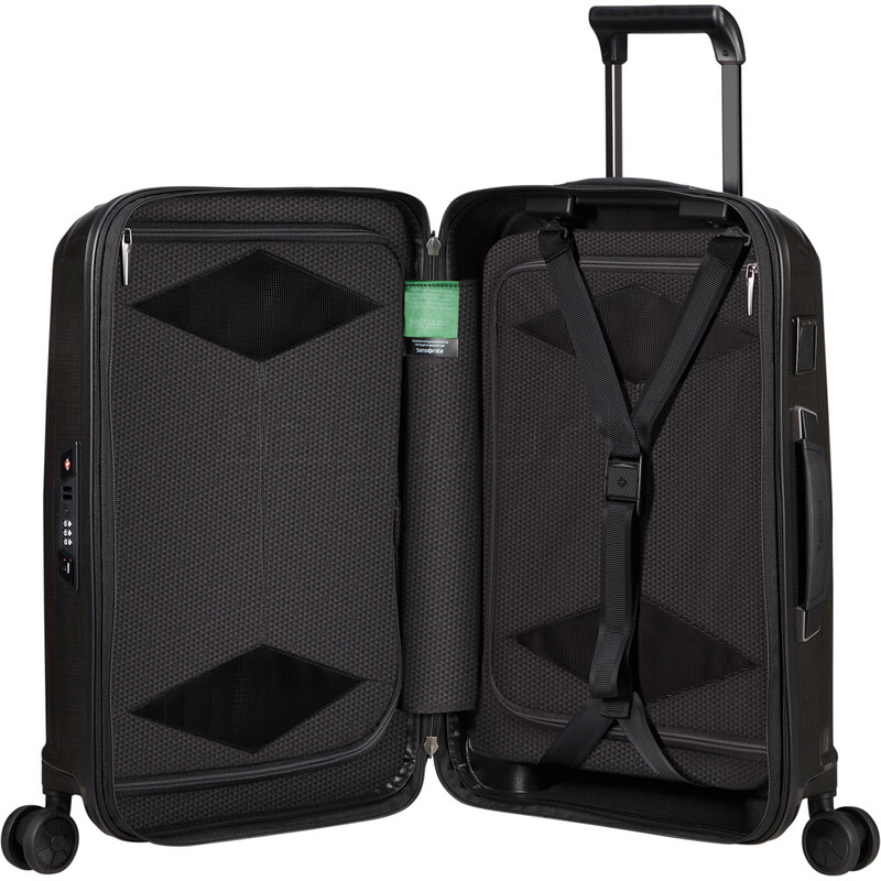 Samsonite Major-Lite luggage represents the start of a new era for Samsonite and Curv® Material Technology. A sophisticated new weaving technique provides incredible self-reinforcing properties as well as a distinctive pattern within. Impeccable attention to detail is shown through the bespoke texture featured on the carry handles, hinges and logo plates in combination with the shadow-chrome metallic trim. The interior is just as well appointed, constructed from Recyclex™ eco-material. Plus, you can make it yours with the included personalisation tag.