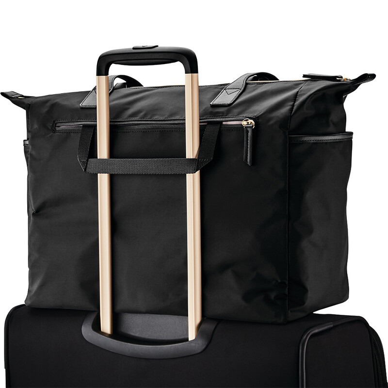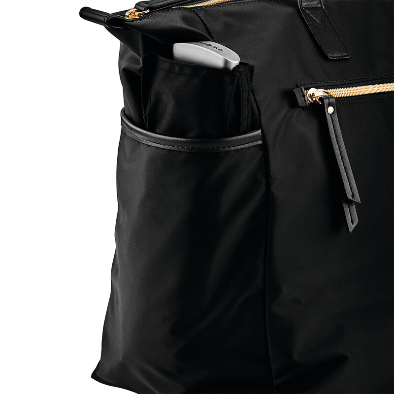 The Samsonite Mobile Solution range offers timeless style with a modern approach to function and organisation. Luxurious gold accent logos and zips elevate the collection. This lightweight, spacious collection will keep you moving effortlessly through a busy commute or a casual weekend meet-up. The SmartSleeve™ enables you to stack your bag on your suitcase for hassle-free travel.