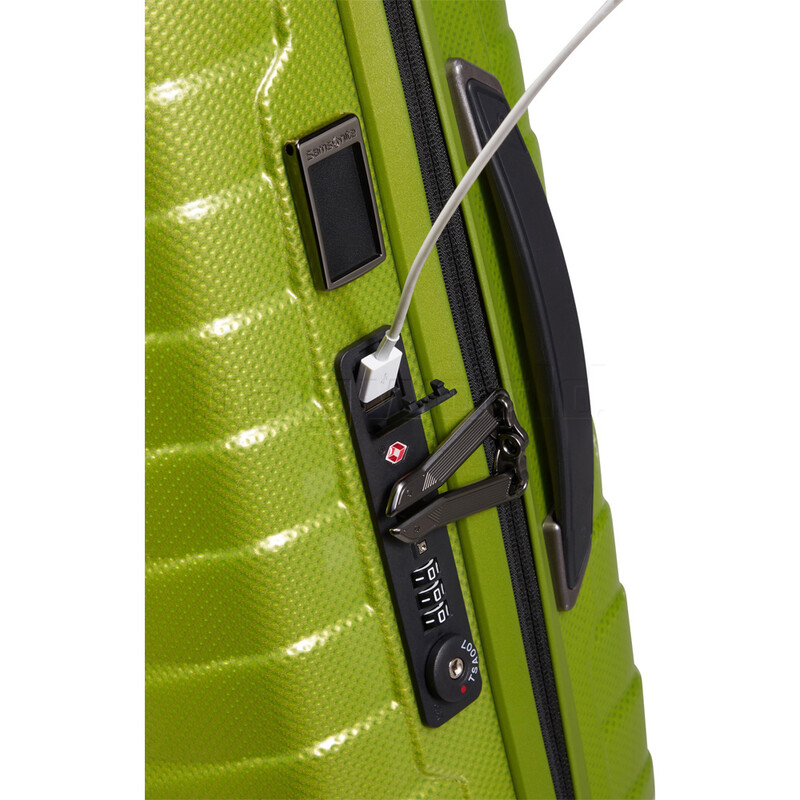 - USB charging port on side of suitcase with inbuilt power pack pocket inside (power pack not included)