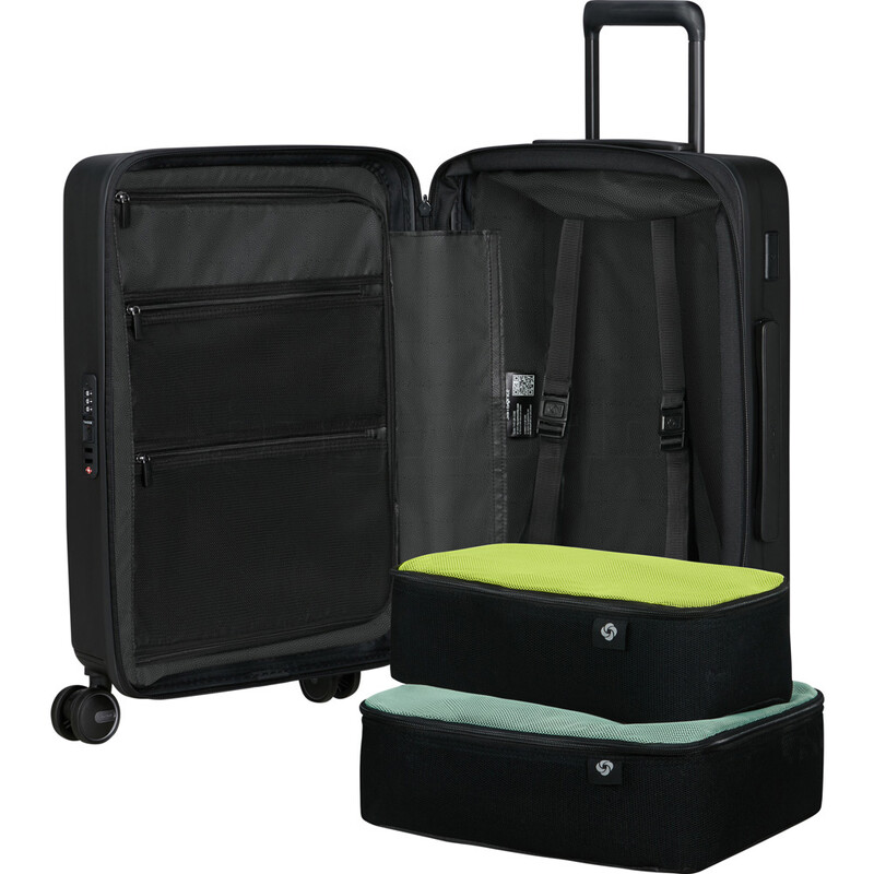 Samsonite Restackd 55cm Easy Access is the ultimate Carry-On companion. The integrated soft-front zippered pocket, which can be locked independently of the main suitcase includes; separate compartments for both laptop and tablet, pockets for other essentials and tech accessories, and can be easily accessed during transit or onboard your flight. Also included are two complimentary removable packing cubes for organised travel. A modern suitcase collection encompassing an urban spirit and minimalist design. Samsonite Restackd, an evolution of the beloved Stackd collection is now even lighter, made utilising strong and versatile polypropylene which is highly scratch resistant and features a durable sophisticated texture, ready to roll as your sidekick around the world.
