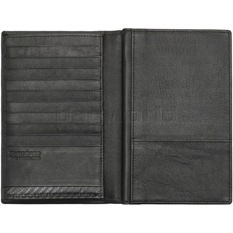 Samsonite RFID DLX Leather Wallets protect payment and identity fraud from unwanted skimming of your credit cards and other contactless credit/identity cards. The range incorporates an internal layer of metallic material which is placed in between the outer layer of leather and internal lining. Made from cow finished leather.