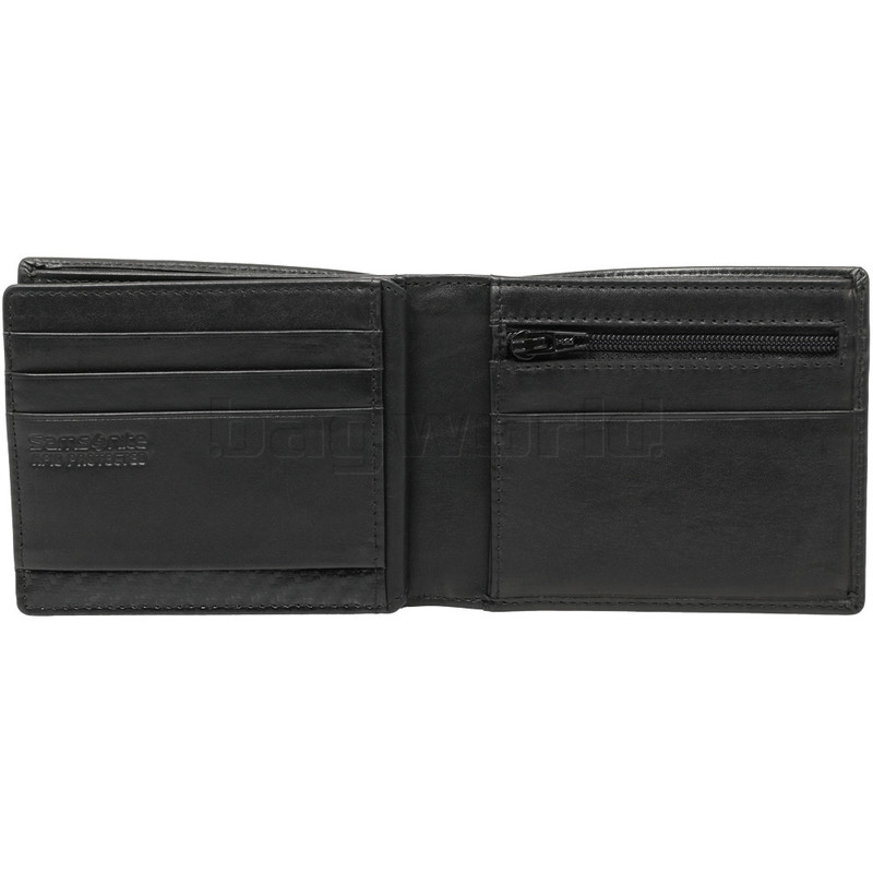 Samsonite RFID DLX Leather Wallet with Coin Pocket Black 91522