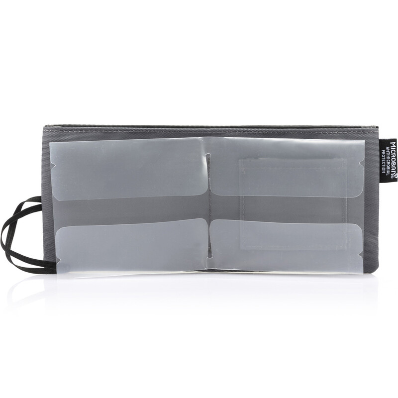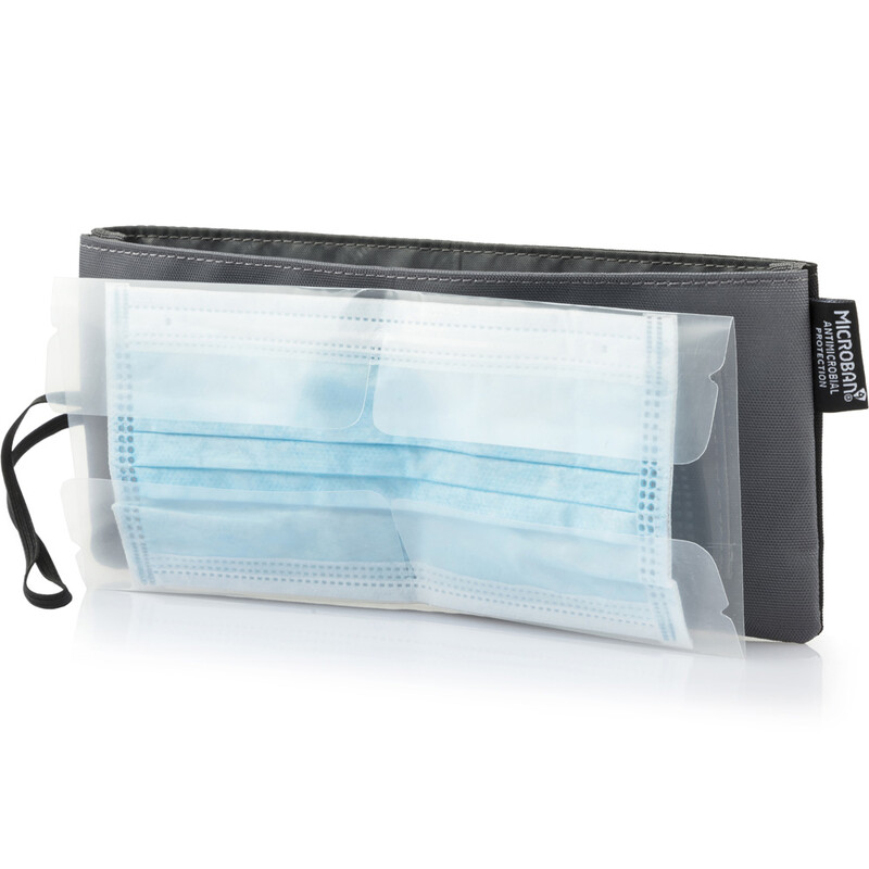 Keep your face mask stored conveniently and hygienically with this multi-purpose, antimicrobial mask storage pouch. Bring along a spare mask wherever you go and safely store new and used masks in separate compartments. To prevent the growth of bacteria and mould, the interior lining of this hygienic pouch is treated with antimicrobial technology.