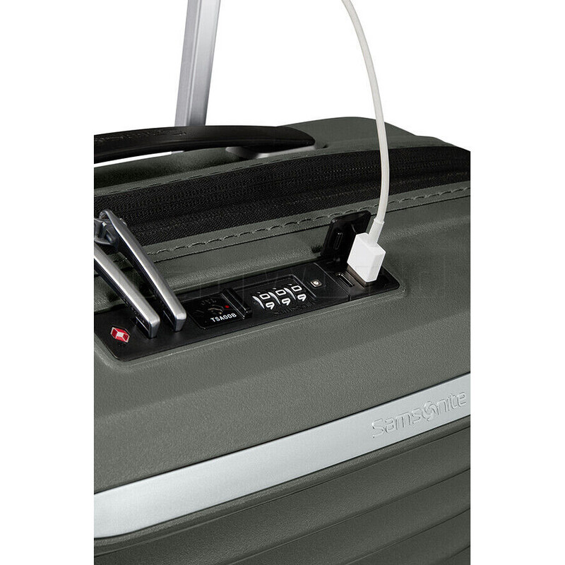 - USB charging port on top of suitcase with inbuilt power pack pocket inside (power pack not included)