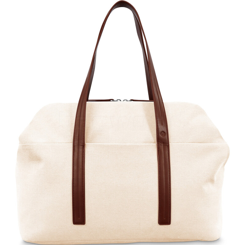 - Removable, adjustable shoulder straps with discreet attachment points in exterior side pockets