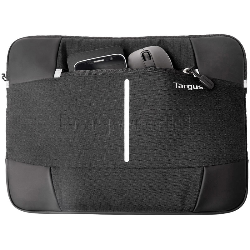 Protect your laptop on the go with a Targus Bex II laptop sleeve. A combination of on trend materials & reflective accents keeps your tech gear protected no matter where life takes you. This sturdy lightweight range combines weather-resistant rip stop fabric, soft polyurethane, and durable padding to cushion your laptop from surface damage.