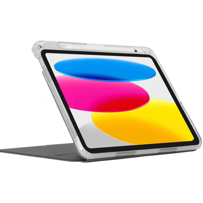 Complement your colorful new iPad with the Targus® Pro-Tek® Clear Case for iPad® (A16), iPad® (10th gen.) 10.9-inch – a case engineered for protection. Featuring a shock-absorbent tray with wrap-around bezel, covered buttons, and reinforced corners, plus a protective folio cover, the case delivers military-grade drop protection (up to 4 feet/1.2 meters)* in its sleek, clear-back design.