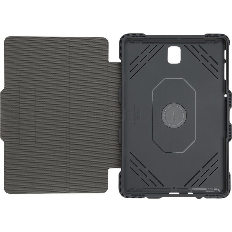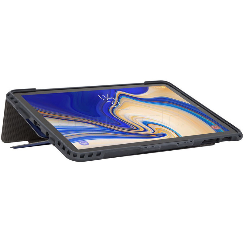 The Pro-Tek™ Rotating Case for the Samsung Galaxy Tab S4 10.5” (2018) delivers practical protection and adaptable good looks with Targus signature geometric Pro-Tek™ design. Rugged corners add impact protection. A custom-molded interior tray with enhanced corners defends against damage. The magnetic wrap closure secures and safeguards on-the-go. And, like other Targus cases, it offers military-grade protection for drops up to 4 feet*.
