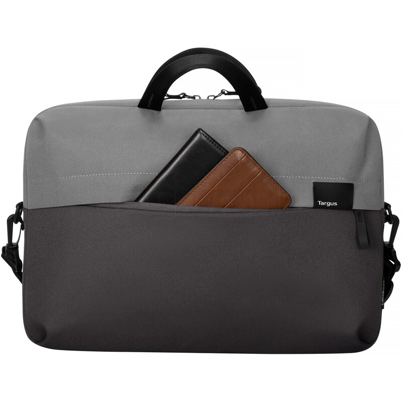 Functional and eco-friendly, the Targus® 16” Sagano™ EcoSmart® Slipcase features a padded main compartment that shields your laptop from everyday bumps and scratches. Slimmer than a briefcase and roomier than a sleeve, its large front pocket keeps accessories handy while its removable shoulder strap and soft grip handles make for an ultra-easy carry.
