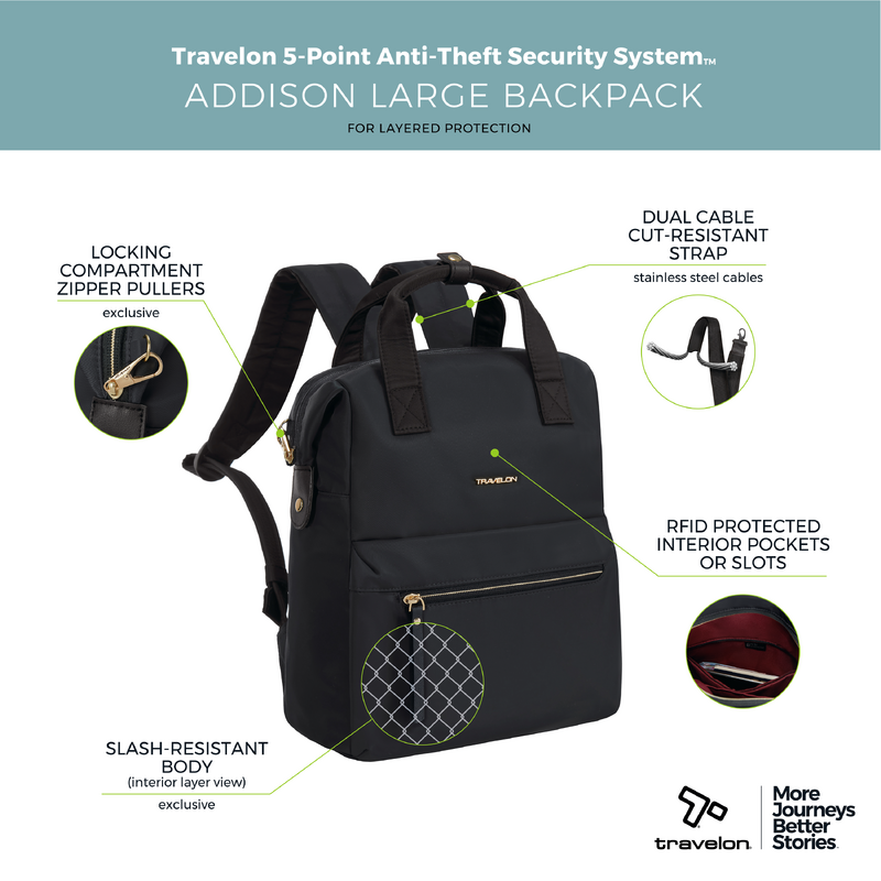 Main features of the Travelon Addison Anti-Theft 13” Laptop Large Backpack include: