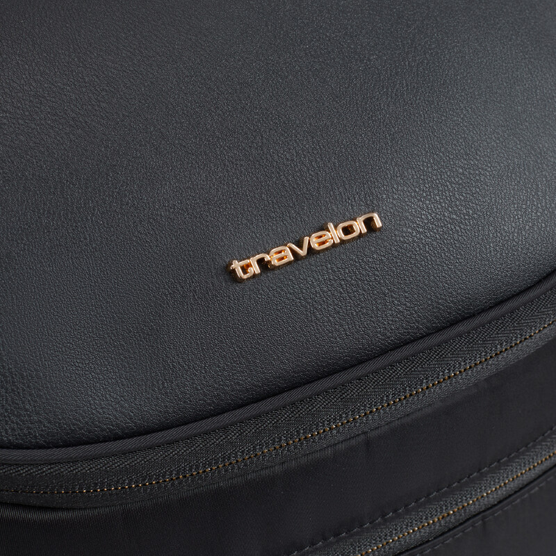 Sleek and stylish modern bags designed for living, working and traveling without limits, Travelon Addison balances urban fashion aesthetics with travel practicality. Quality construction and innovative textiles include sturdy nylon on the lower half and 100% vegan leather on the upper half of the bag. Thoughtfully organized to keep up with your day and the built-in 5-Point Anti-Theft security system will protect your valuables from pickpockets and thieves. Addison X Travelon. We carry your world.
