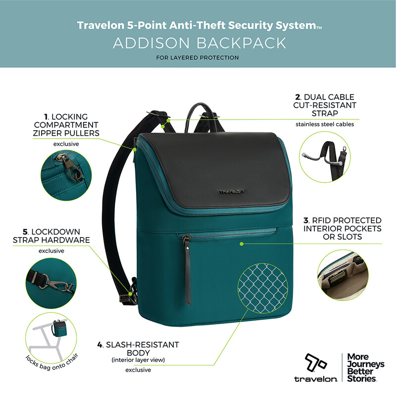 Main features of the Travelon Addison Anti-Theft Backpack include: