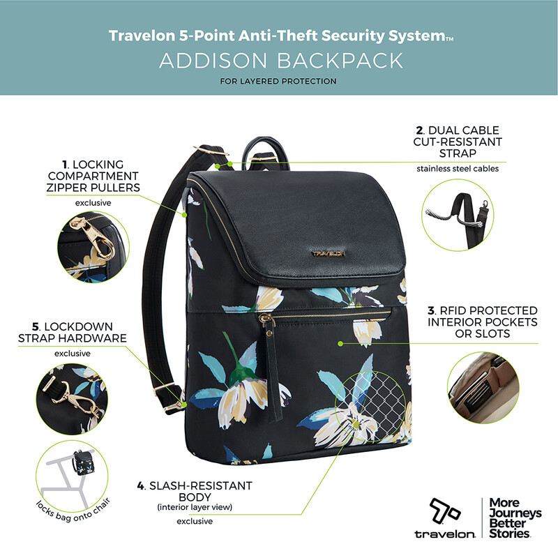 Main features of the Travelon Addison Anti-Theft Backpack include:
