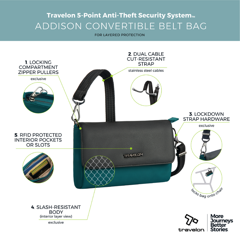 Main features of the Travelon Addison Anti-Theft Convertible Belt Bag include: