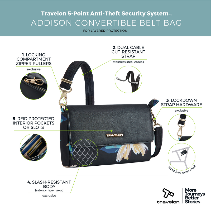 Main features of the Travelon Addison Anti-Theft Convertible Belt Bag include: